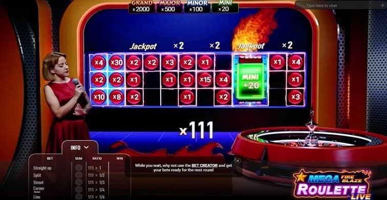 As soon as you launch Mega Fire Blaze Roulette Live, you’ll notice the impressive studio set design. It’s a sleek, colourful environment with fire-themed graphics that enhance the game’s energy. The live dealer table looks polished and professional, complete with smooth camera angles and clean interfaces for placing bets.